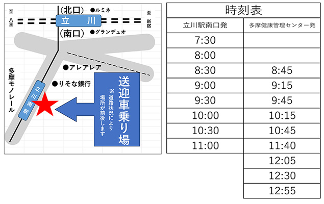 立川駅南口と多摩健康管理センター間を運行しております。